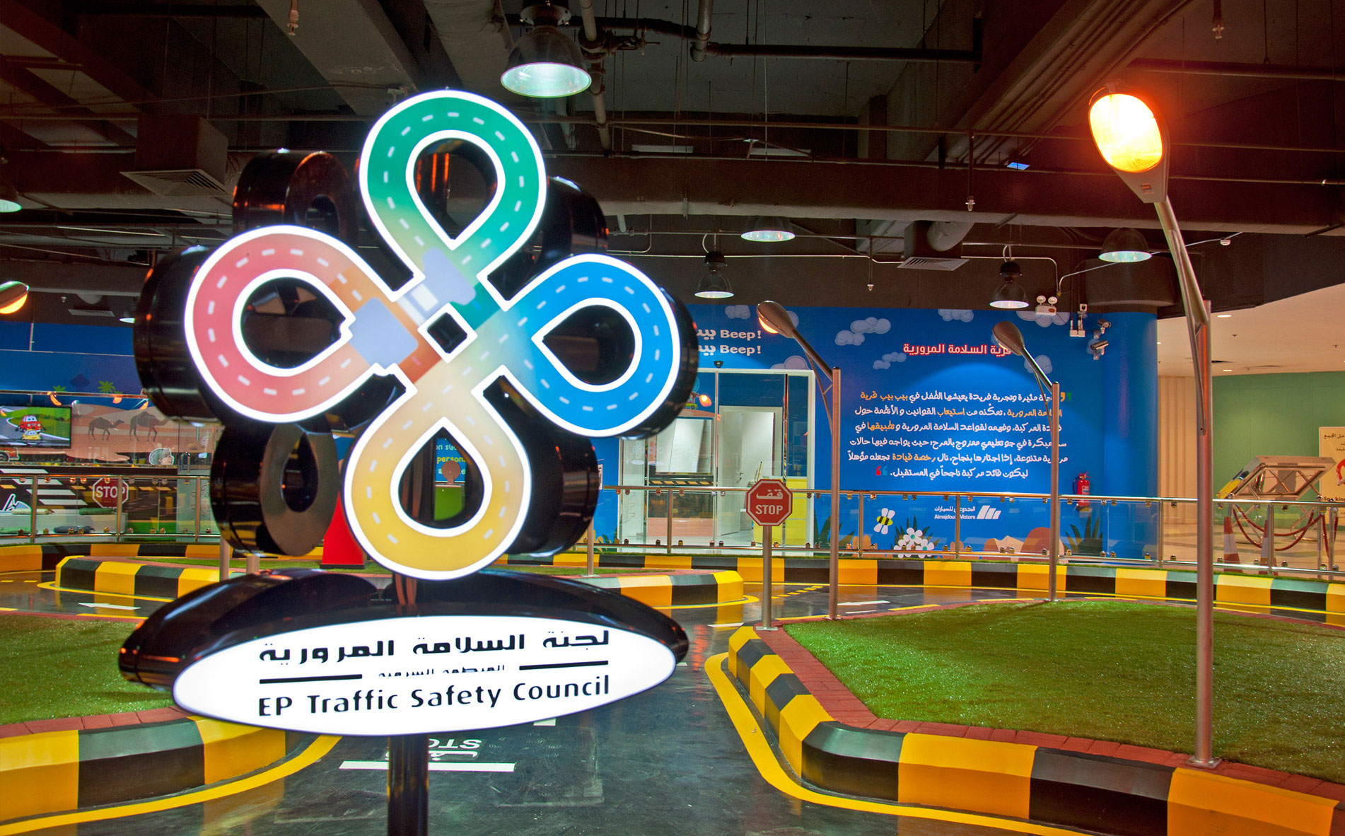 Beep Beep Driving School is part of Grand Prix Racing Company, which is the first company in car racing in Saudi Arabia. GPR commissioned GMEDIA to supply and install an array of new signage (Interior signs, wall displays, window graphics etc.) for its Traffic safety park located in Rashid Mall.