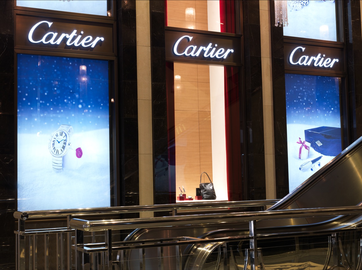 Cartier showroom located in Rashid Mall now has a smart new look to its extensive exterior frontage with new signage installed by GMEDIA.