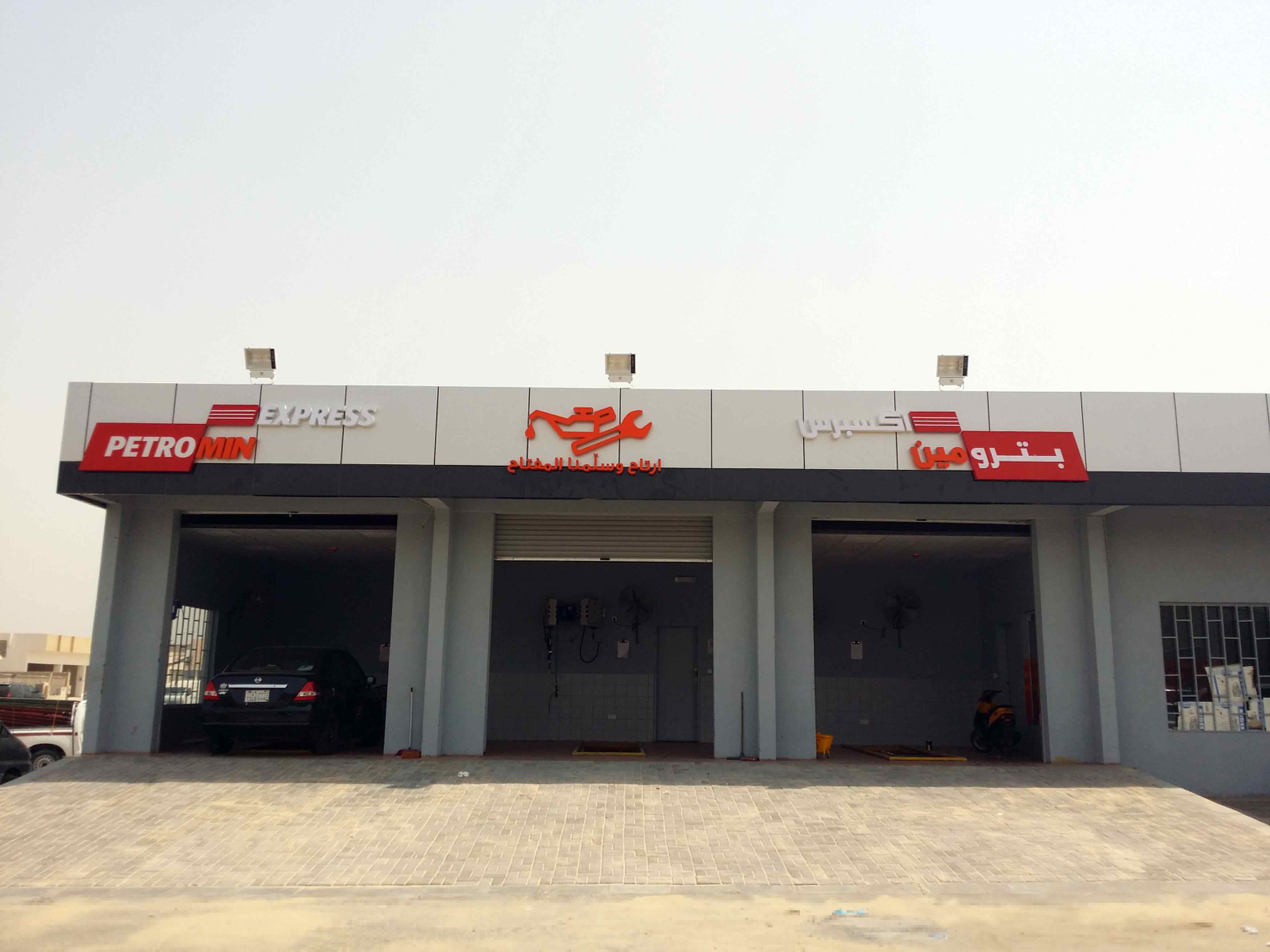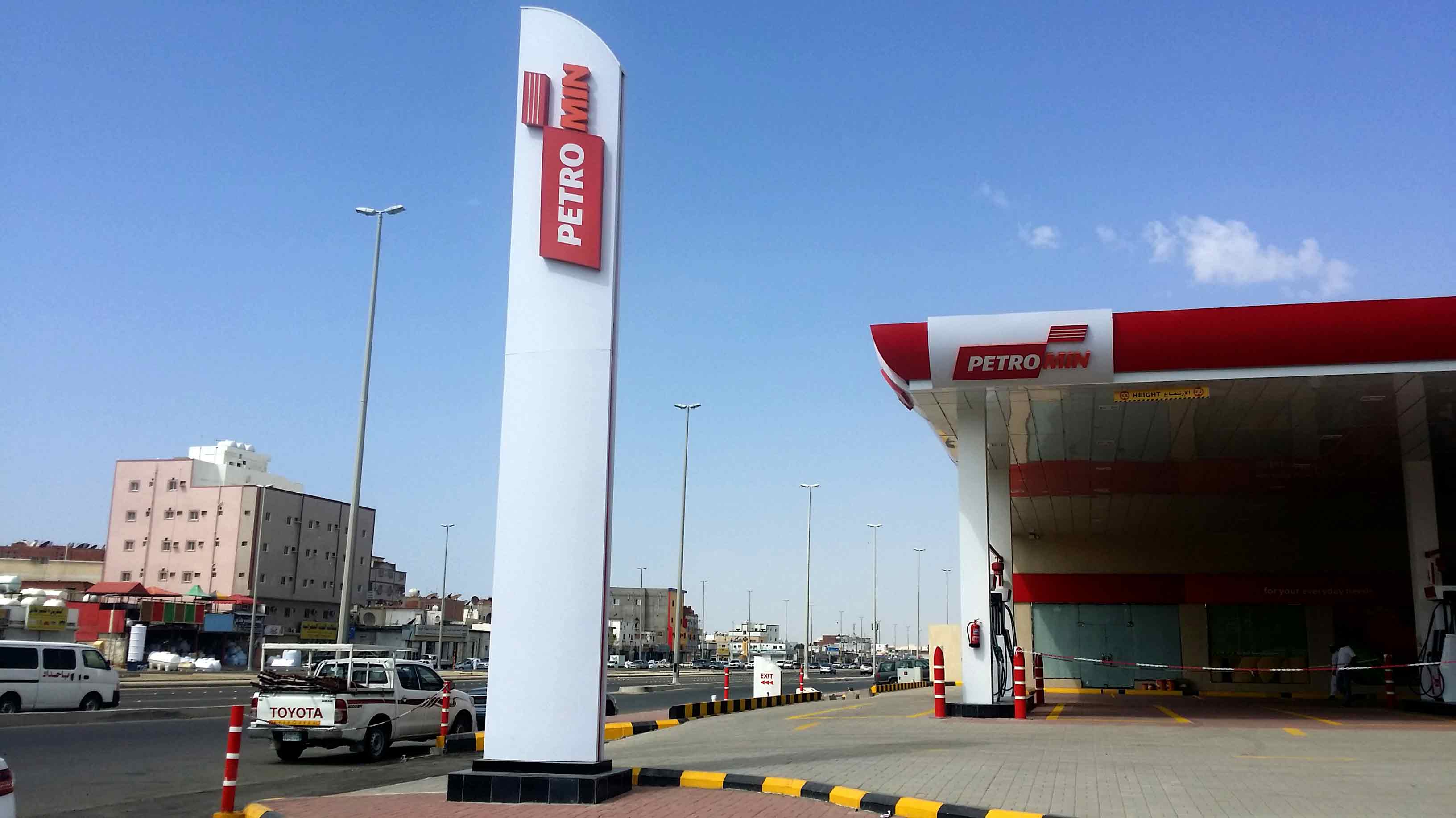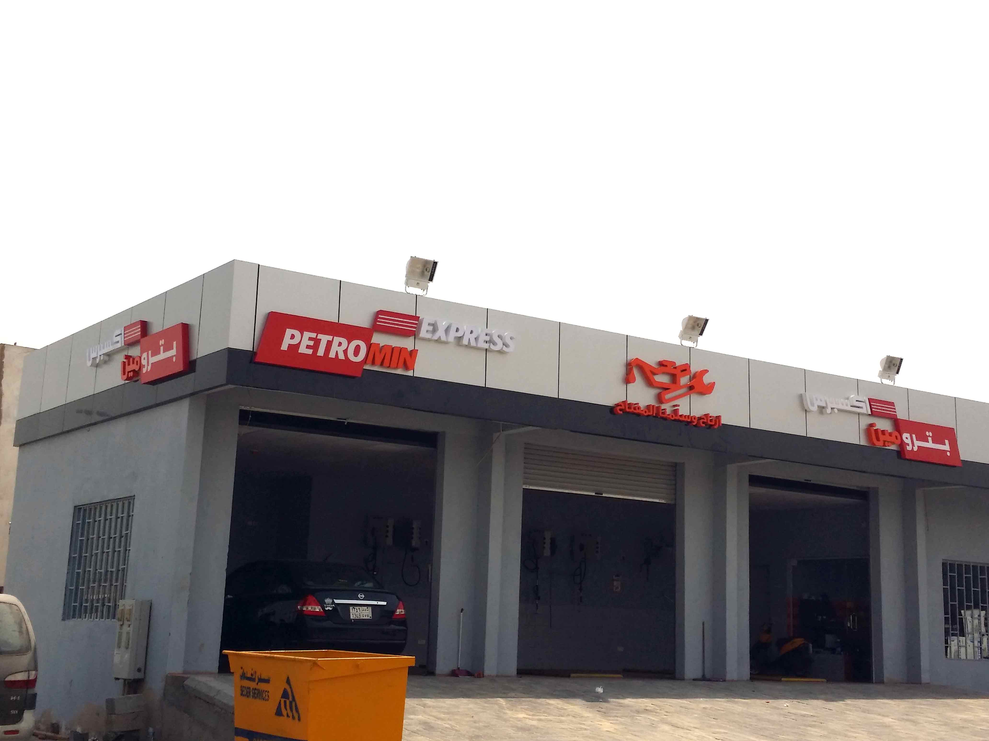 GMEDIA constructed exterior signs for Petromin Corporation ( the Lubricating oil Company) across a number of their branches through their extensive work force.